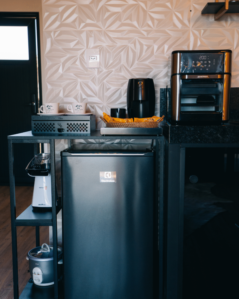 Sinta-se em casa na cozinha totalmente equipada, com geladeira, fogão, utensílios e mais. Prepare suas refeições preferidas com praticidade e conforto durante a estadia.